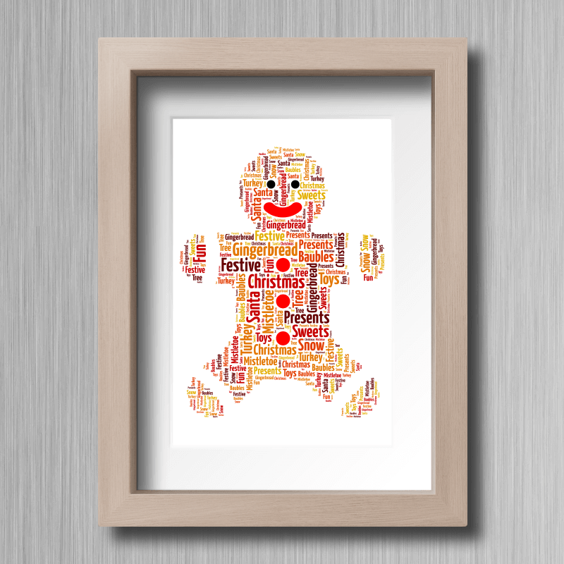 This is a fun Word Cloud Gift in the design of a Gingerbread man. This is a great present for all you gingerbread cookie lovers out there. Simply make the design special by using your own chosen words and variety of colours.