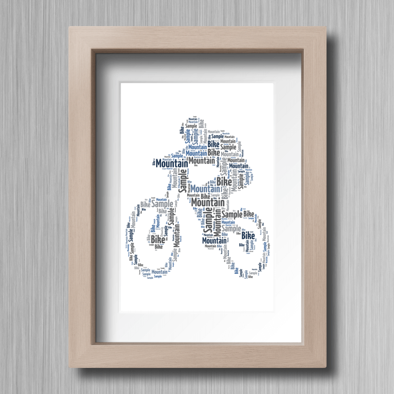 This word cloud gift will be a great unique present for anyone you know who enjoys the sport of Mountain Biking that includes downhill, four cross, cross-country and trailquest. Personalise using your own words and colours.