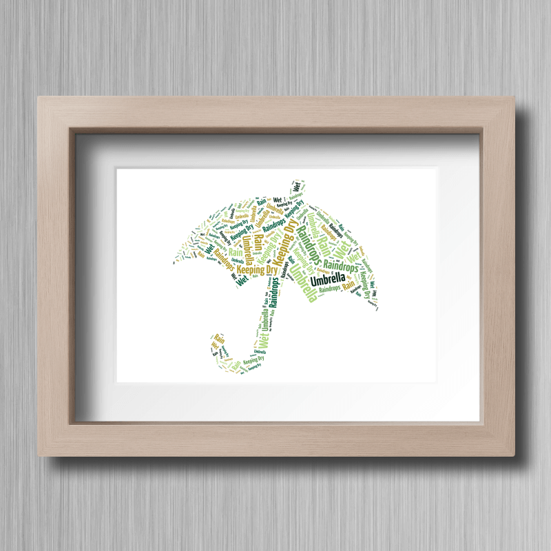 Do you like singing in the rain? Well, if you do don’t forget your brolly! If you are looking for that unusual present then why not consider this umbrella word cloud gift as a special present for someone who likes those rainy days.